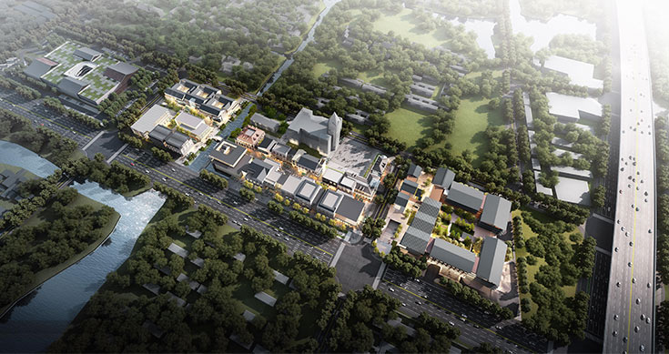 首創.烏鎮 項目位于桐鄉市烏鎮鎮平安區塊,東側為烏鎮大道,南側為現狀河流,西側為規劃道路,北臨烏塍線,總建筑面積約10萬m2,由商業、住